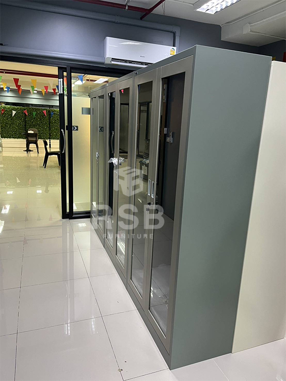 หน้างานนี้ลูกค้าได้มาเลือกซื้อตู้เหล็กสำหรับเก็บเอกสารไว้ใช้ในออฟฟิศค่ะ ได้เลือกใช้ตู้เอกสารเหล็กบานเปิดกระจก ด้านในพิเศษมีแผ่นชั้น 4 แผ่น ใส่ของ 5 ช่อง วางแฟ้มเอกสารได้ทุกช่อง รหัสสินค้า 2931