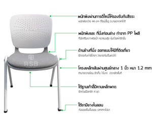 เก้าอี้ห้องประชุม เก้าอี้นักเรียน วัสดุ PE แบบหนา ซ้อนเก็บได้ รหัส 4707