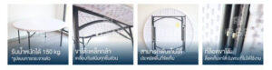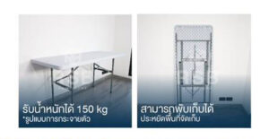 หรือ ใช้ในที่ร่ม ในอาคาร แต่ต้องการเก็บง่าย เคลื่อนย้ายง่าย แค่พับหน้าโต๊ะ แต่ไม่ต้องยกหนัก อาจเลือกดูในหมวดโต๊ะพับล้อเลื่อน สามารถพับแล้วเข็น มีล้อเลื่อนเก็บได้เลย ไม่ต้องยก