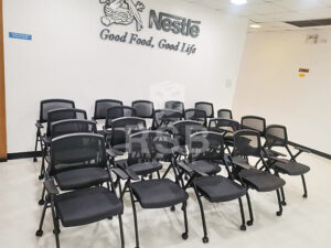 ภาพถ่ายจากหน้างานจัดส่งเก้าอี้แบบมีล้อ ขาเหล็กหนา 1.5 mm รุ่นพับได้