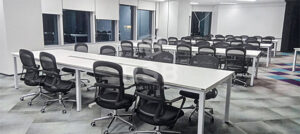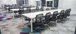 รีวิวภาพถ่ายจากหน้างานนี้ จัดส่งโต๊ะประชุมตัวต่อขาเหล็กตรงพร้อมกับเก้าอี้พนักพิงตาข่าย