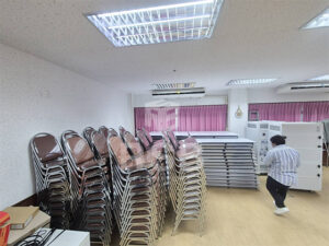 ลูกค้าสั่งซื้อเก้าอี้พร้อมโต๊ะประชุม หน้างานนี้โซนห้องประชุมค่ะ