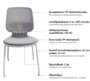 เก้าอี้สัมมนา เก้าอี้ประชุม เหล็กหนาพิเศษ 1.5 mm พนักพิงตาข่าย รหัส 4774