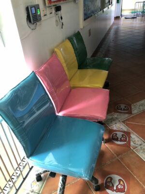 หน้างานนี้ลูกค้าต้องการเก้าอี้แบบหลากหลายสี แบบคันเลอฟู จัดส่งถึงที่เรียบร้อยค่ะ