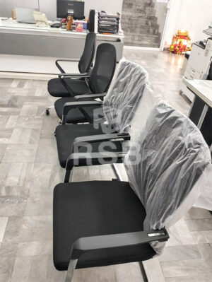 หน้างานนี้จัดส่งเก้าอี้สำนักงาน พนักพิงและที่นั่ง หุ้มด้วยผ้า โครงเก้าอี้เหล็กหนาชุบโครเมียม