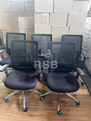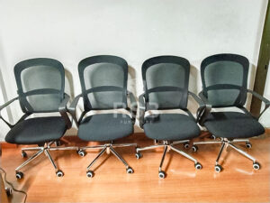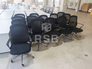 หน้างานนี้จัดส่งเก้าอี้พนักพิงตาข่ายจำนวน 2 รุ่น รุ่นแรกเป็นเก้าอี้สำนักงาน ขา C ส่วนอีกรุ่นเก้าอี้ทำงาน ขาเหล็กชุบโครเมียมเงาล้อไนลอน