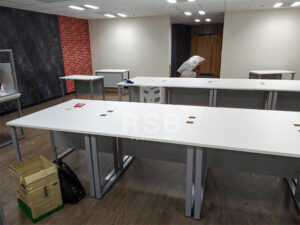 ผลงานติดตั้ง สั่งทำ โต๊ะทำงาน ขาเหล็กตัว C แบบโล่ง ขนาด 120 cm จำนวน 20 ที่นั่ง