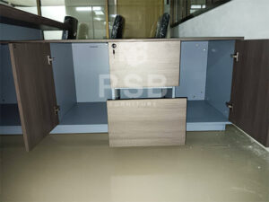 สำหรับหน้างานนี้ลูกค้าได้เลือกซื้อโต๊ะทำงานตัวแอลที่มาพร้อมกับตู้ไซด์บอร์ดข้าง 1 บานเปิด 2 ลิ้นชัก 1 ช่องโล่ง