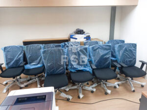 ภาพถ่ายจากหน้างานจัดส่งเก้าอี้ทำงานเพื่อสุขภาพ รุ่นพนักพิงดีไซน์ 2 ชั้น