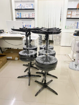 หน้างานนี้จัดส่งเก้าอี้บาร์ ขาเหล็ก 4 แฉกไม่มีล้อ เบาะนั่งหมุนได้ และปรับสูงต่ำได้
