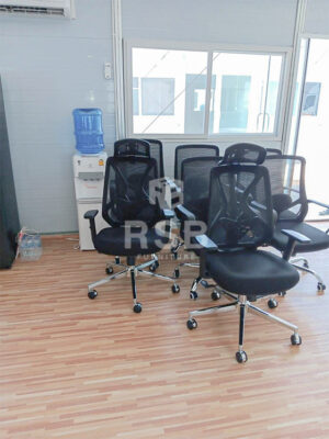 หน้างานบริเวณภายในออฟฟิศค่ะ ลูกค้าต้องการเก้าอี้ไปให้พนักงานนั่งทำงานใหม่ ได้เลือกใช้เป็นเก้าอี้แบบไม่มีล้อ