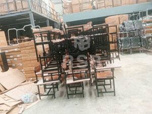 ภาพถ่ายจากหน้างาน จัดส่งเก้าอี้เลคเชอร์ ที่นั่งพนักพิงไม้ โครงเหล็กหนาสีดำ จำนวนหลายตัวเลยค่ะ