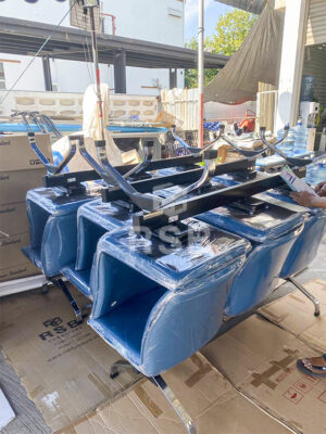 ภาพถ่ายจากหน้างานจัดส่งเก้าอี้แถว 4 ที่นั่ง หุ้มด้วยหนัง PU เกรดคุณภาพ ขาเหล็กหนา 1.5 mm