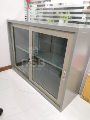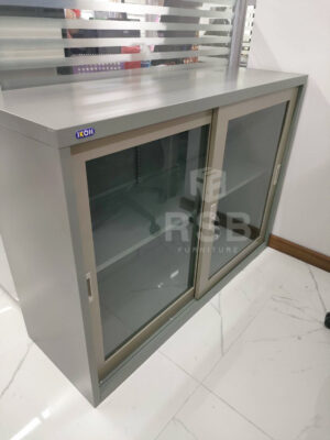 ตู้เอกสารเหล็ก บานเลื่อนกระจก 4 ฟุต 120 CM พิเศษแผ่นชั้น2แผ่น ขนาด W 120 X D 41 X H 88 CM. รหัส 2933 รุ่นขายดี