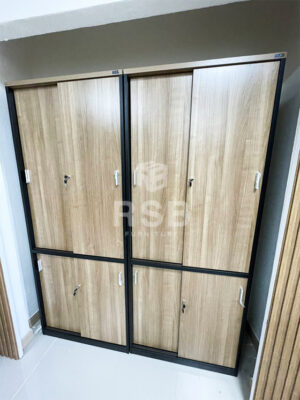 ภาพถ่ายจากหน้างานจัดส่งตู้เอกสารสูง บานเลื่อนบน และ ล่าง พร้อมกุญแจล็อคและมือจับ