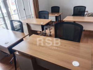 ภาพถ่ายสินค้าจากหน้างานโซนห้องทำงานของออฟฟิศ ลูกค้าได้เลือกโต๊ะทำงาน ขาเหล็ก ขนาด 120×60 cm