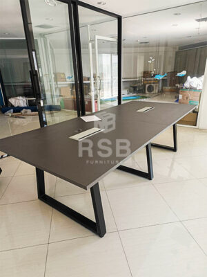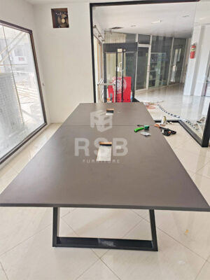 หน้างานนี้เป็นหน้างานในห้องประชุมค่ะ ลูกค้าได้เลือกโต๊ะประชุมที่มีขาเหล็กกล่องใหญ่พิเศษสีดำทรงคางหมู