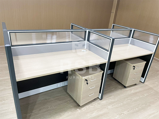 ภาพถ่ายจากหน้างาน จัดส่งและประกอบติดตั้งโต๊ะทำงานกลุ่ม 4 ที่นั่ง เรียบร้อยค่ะ รุ่นนี้มาพร้อม Partition กั้น จากพื้นตั้งสูงขึ้นมา 110 cm กั้นแบ่งพื้นที่ ให้เป็นสัดส่วน และส่วนตัว และมีตู้เอกสารล้อเลื่อนให้ ทั้ง 4 จุดแยกกันค่ะ รหัสสินค้า 5113