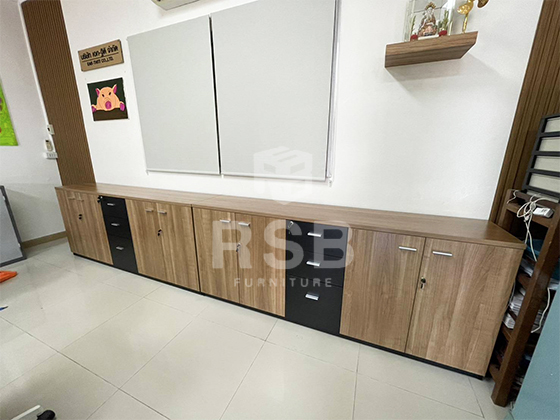 ผลงาน โต๊ะทำงาน ขาไม้ 3 ลิ้นชักเต็มถึงพื้น ขนาดกว้าง 120 / 150 / 180 CM รหัส 1928