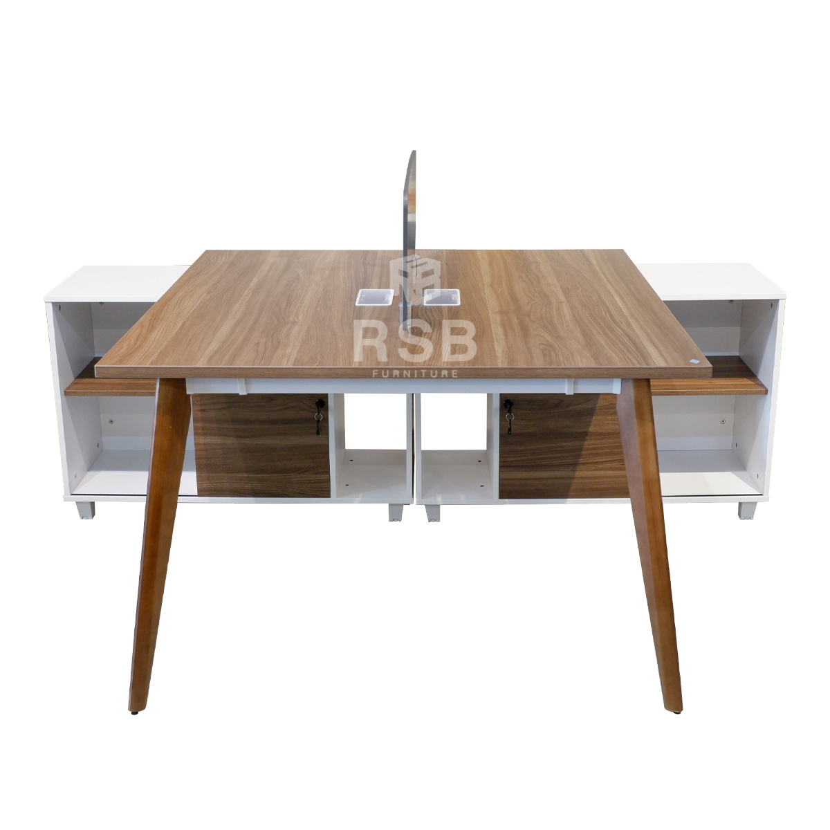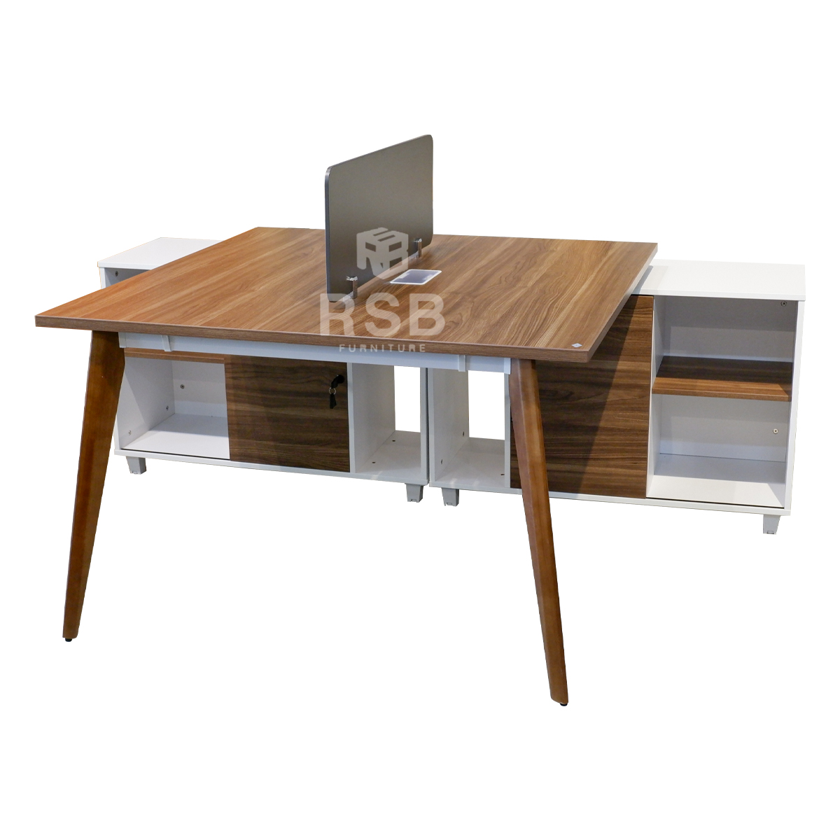 โต๊ะทำงานกลุ่ม 2 ที่นั่ง ที่วางของเชื่อมยาวระหว่าง 2 คน พร้อมฉากกั้น ขนาด 140 x 200 cm รหัส 4669