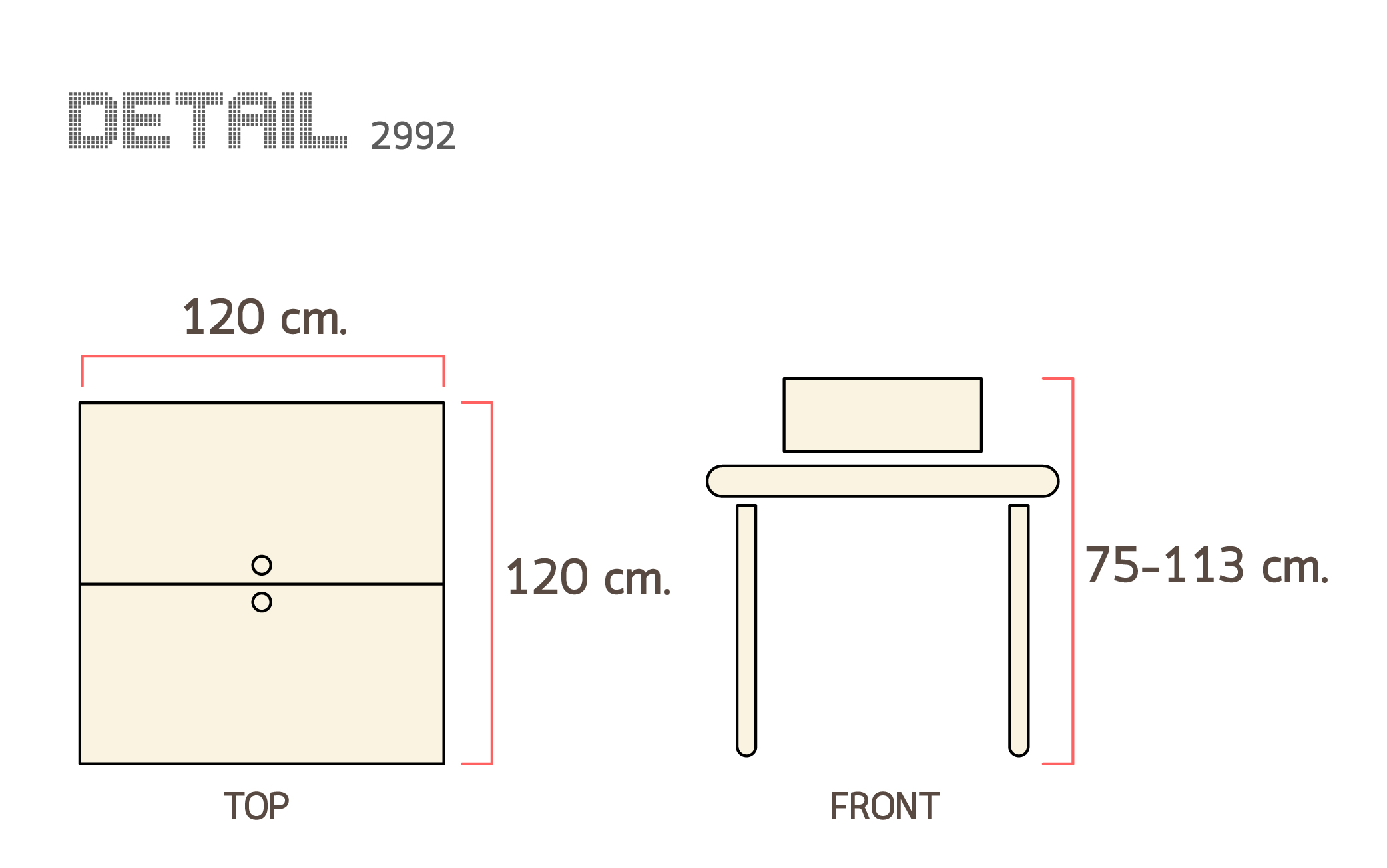 – ขนาด กว้าง 120 cm ลึก 120 cm สูง 75 cm