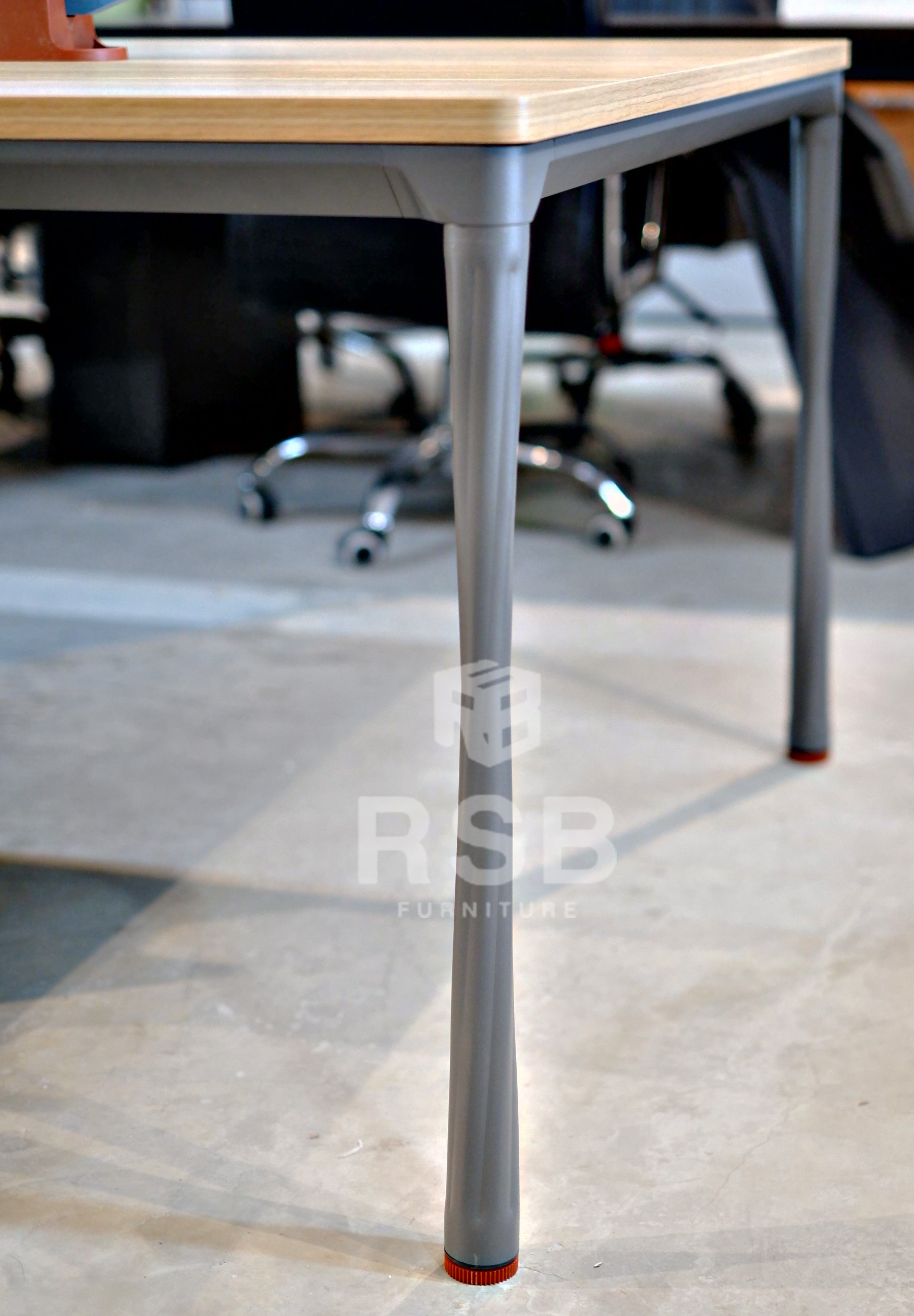 – ขาเหล็ก Design work หนาไม่น้อยกว่า 1.3 mm ทำเหล็กขึ้นรูป ตรงกลางเว้าโค้งรับกับดีไซน์โต๊ะ