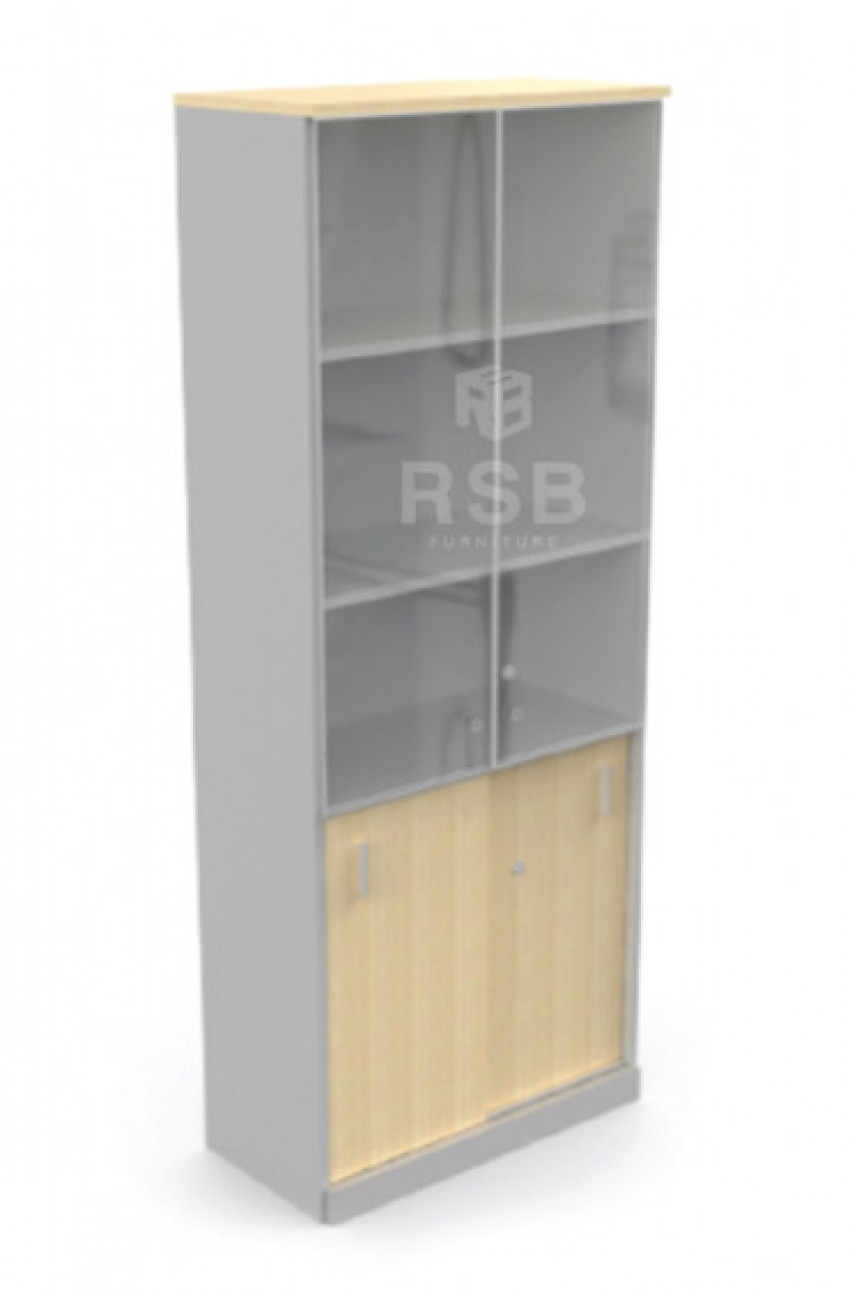 ตู้เอกสารสูง 5 ชั้น 3 ชั้นบนกระจกบานเปิด 2 ชั้นล่างบานเลื่อนทึบ ขนาด 80 x 40 สูง 200 cm เมลามีน รหัส 2071