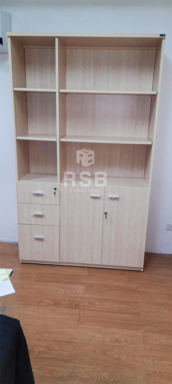 จัดส่งเรียบร้อยค่ะหน้างานนี้ลูกค้าต้องการตู้สำหรับเก็บของเก็บเอกสาร ได้เลือกใช้เป็นตู้เอกสารสูง 200 ซม. รหัสสินค้า 2749 รุ่นนี้จะมีลิ้นชัก 3 ใบ พร้อมบานเปิด ภายในมีชั้นความของ 1 ชั้น และด้านบนเป็นช่องโล่ง 6 ช่อง เล็ก 3 ช่อง ใหญ่ 3 ช่องค่ะ ปิดผิวด้วยเมลามีน ลูกค้าเลือกใช้เมลามีนสีเมเปิ้ลล้วนทั้งตัวค่ะ