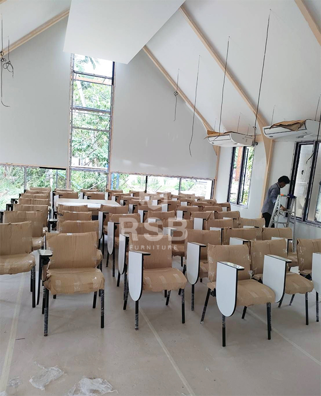 จัดส่งเรียบร้อยค่ะสำหรับหน้างานนี้ ลูกค้าต้องการเก้าอี้เลคเชอร์ที่รับน้ำหนักได้ดี ได้เลือกใช้เป็นเก้าอี้เลคเชอร์ รหัส 767 รุ่นนี้โครงสร้างทำจากเหล็กแป๊ปรูปรักบี้ขนาด 15 x 30 mm ความหนาเหล็กไม่น้อยกว่า 1.2 mm รับน้ำหนักได้ดีเลยค่ะสำหรับรุ่นนี้ แผ่นเลคเชอร์ยกขึ้นพับเก็บด้านข้างได้ สะดวกในการลุกนั่งอีกด้วยค่ะ ส่วนที่นั่งและพนักพิงหุ้มด้วยหนังสามารถเลือกสีของหนังได้ค่ะ มีสีให้เลือกมากมายเลยค่ะ