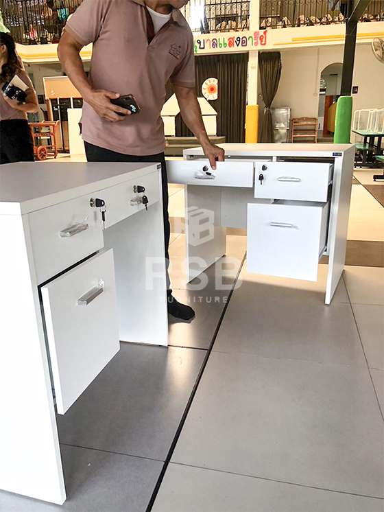 จัดส่งถึงมือลูกค้าแล้วค่ะ หน้างานนี้ได้เลือกสั่งโต๊ะทำงานขาไม้ ขนาด W80 x D60 x H75 รหัสสินค้า 1322 โต๊ะรุ่นนี้จะมี 3 ลิ้นชัก พร้อมกุญแจล็อคค่ะ และปิดผิวด้วยเมลามีน กันร้อน กันความชื้น ลูกค้าเลือกปิดผิวเมลามีนสีขาวล้วนทั้งตัวเลยค่ะ