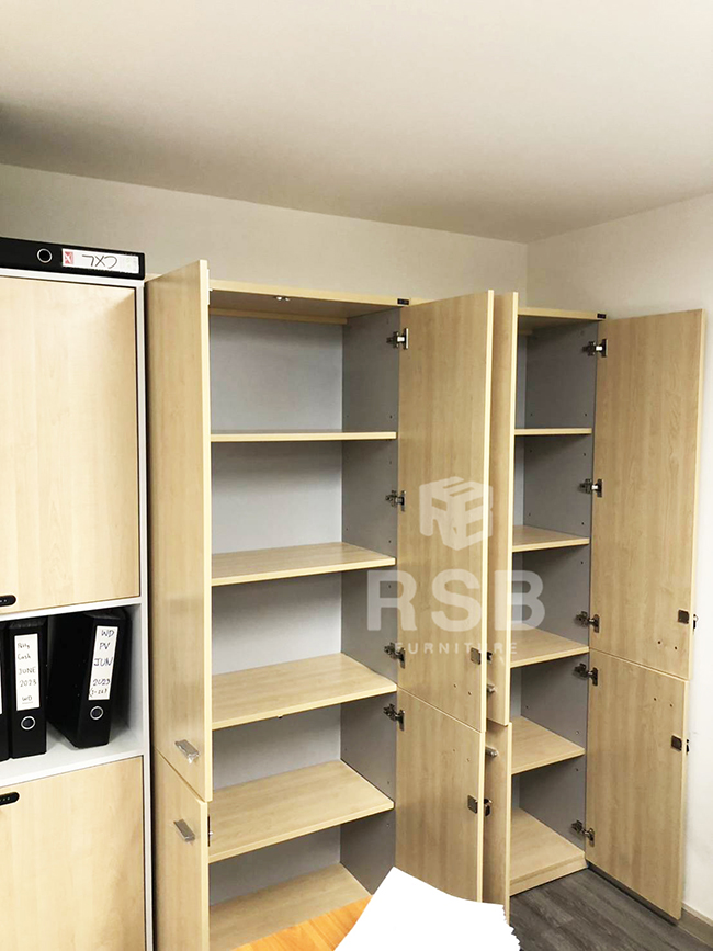 ผลงาน ตู้เอกสารสูง ดีไซน์ชั้นวางแบบสลับ ขนาด 80 X 40 สูง 200 CM ผิวเมลามีน รหัส 668