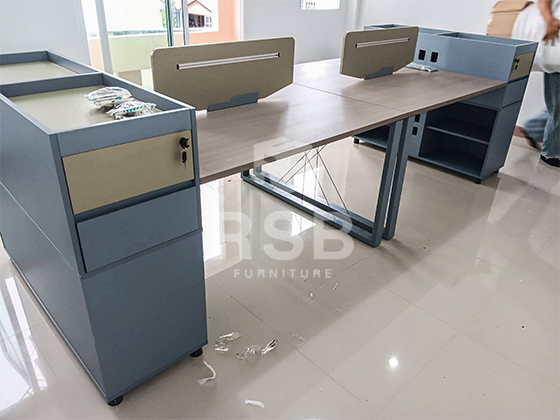 จัดส่งเรียบร้อยค่ะหน้างานในภาพที่นำมาฝาก ลูกค้าสั่งซื้อโต๊ะทำงานกลุ่มแบบ 2 ที่นั่ง มาต่อกันทำเป็น 4 ที่นั่งภายในออฟฟิศค่ะ โต๊ะที่เลือกใช้จะเป็นโต๊ะทำงานกลุ่ม WORKSTATION ขนาด 160 x 120 cm พร้อมฉาก รหัส 4327 รุ่นนี้มีตู้ลิ้นชัก 2 จุด พร้อมชุดกุญแจล็อค มีที่วางของ พร้อมปลั๊ก ครบครั่นไม่ต้องติดตั้งเพิ่มเลยค่ะ
