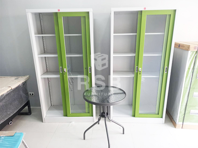 หน้างานนี้ลูกค้าได้เลือกใช้ตู้เอกสารเหล็กจำนวน 2 แบบค่ะ และได้เลือกใช้เป็นตู้เหล็กยี่ห้อ Luckyworld ทั้ง 2 แบบ แบบแรกที่เลือกใช้จะเป็นตู้เอกสารเหล็กบานเลื่อนกะจก รุ่น KSG -914 รหัส 781 ภายในตู้รุ่นนี้จะมี 3 แผ่นชั้น สามารถปรับระดับชั้นได้ค่ะ ส่วนอีกแบบ จะเป็นตู้ลิ้นชักเหล็ก รุ่น KCDX-4 รหัส 1805 เป็นตู้ 4 ลิ้นชัก พร้อมมีกุญแจล็อคค่ะ ลูกค้าได้เลือกสีตู้เฉพาะหน้าบานสีเขียวทั้ง 2 แบบเลยค่ะ