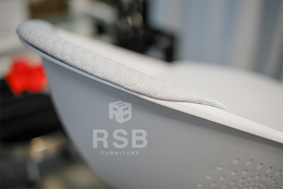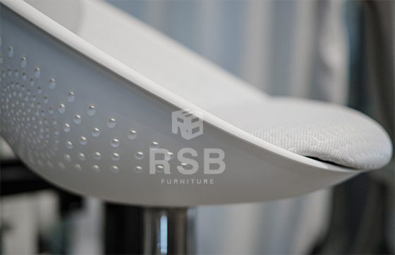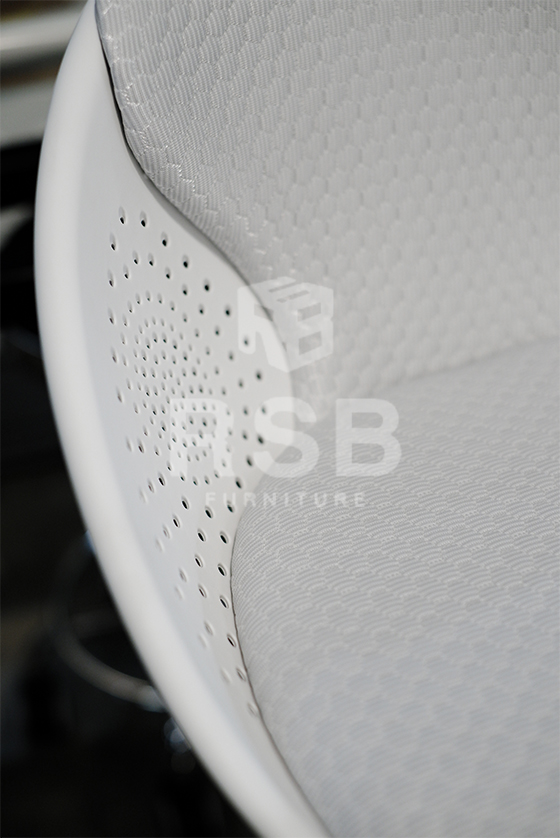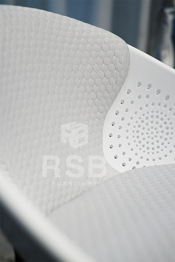 – พนักพิงเปลือกโพลี PP สีขาว หุ้มด้วยเบาะผ้าหนา พิงเอนรับกับหลัง
