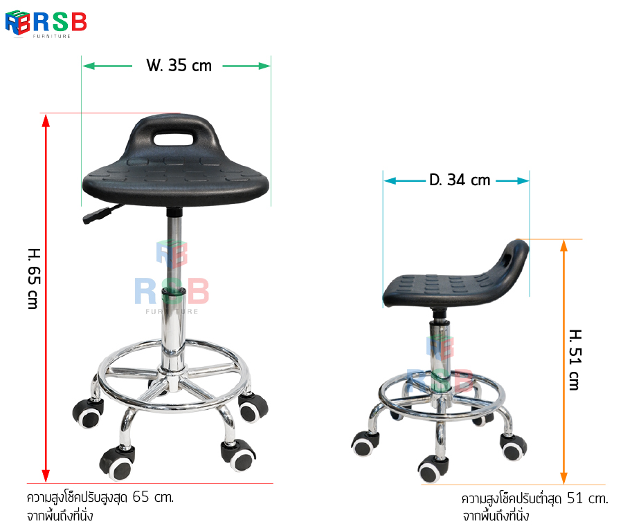 – ขนาดกว้าง 35 cm x ลึก 34 cm x สูง 51-65 cm