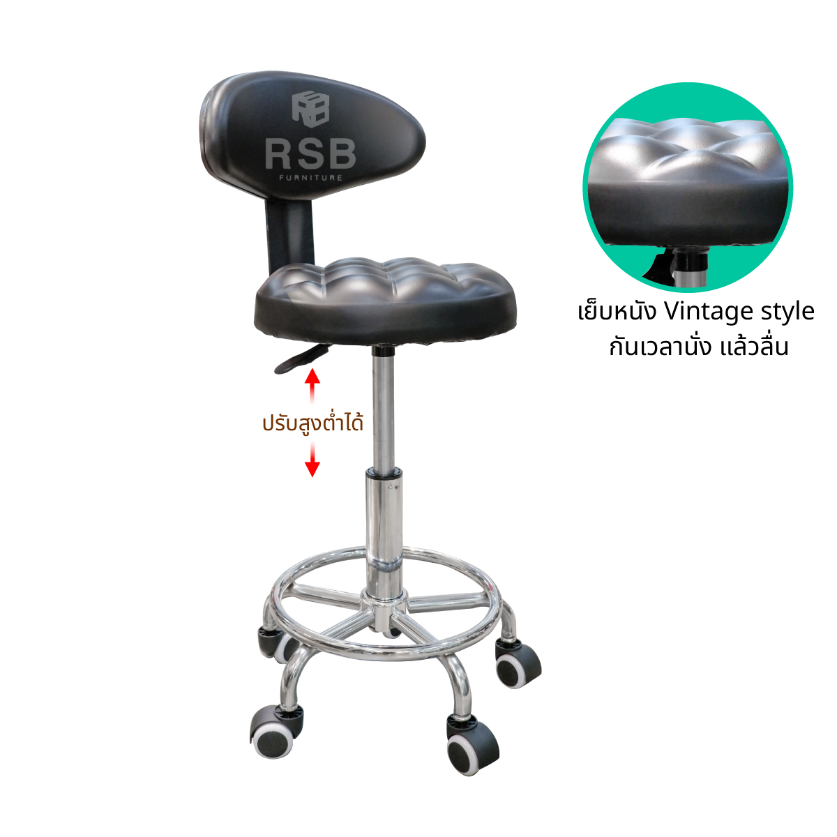 เก้าอี้บาร์ มีพนักพิง ที่นั่งดีไซน์ เย็บเป็นดุม กันลื่น รหัส 4742