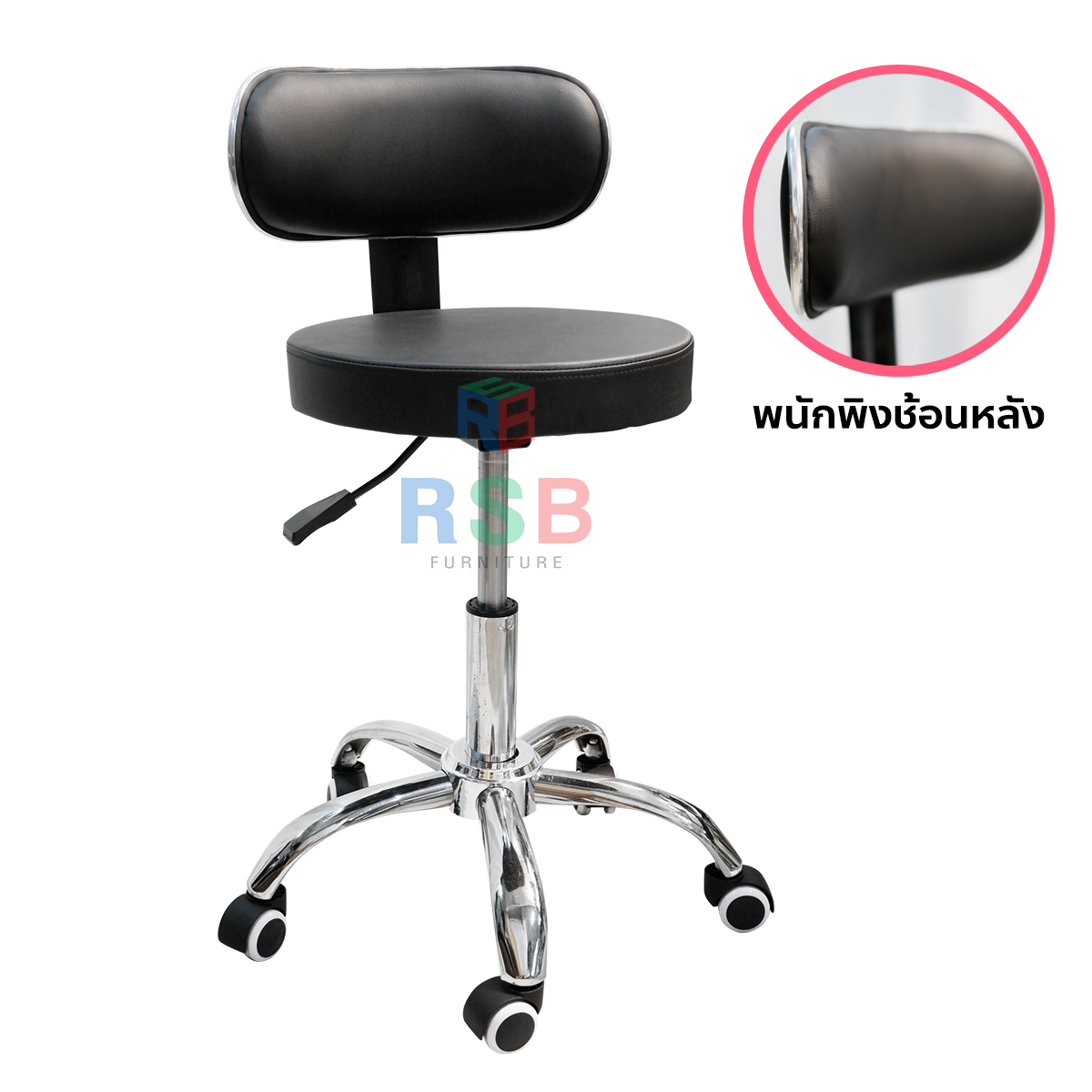 – ขาเป็นเหล็กชุบโครเมี่ยม + มีล้อ 5 แฉก