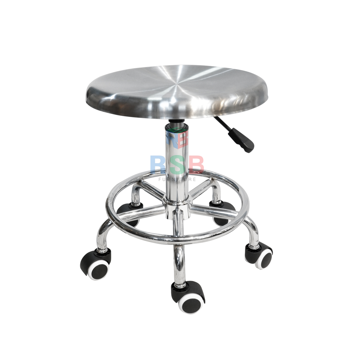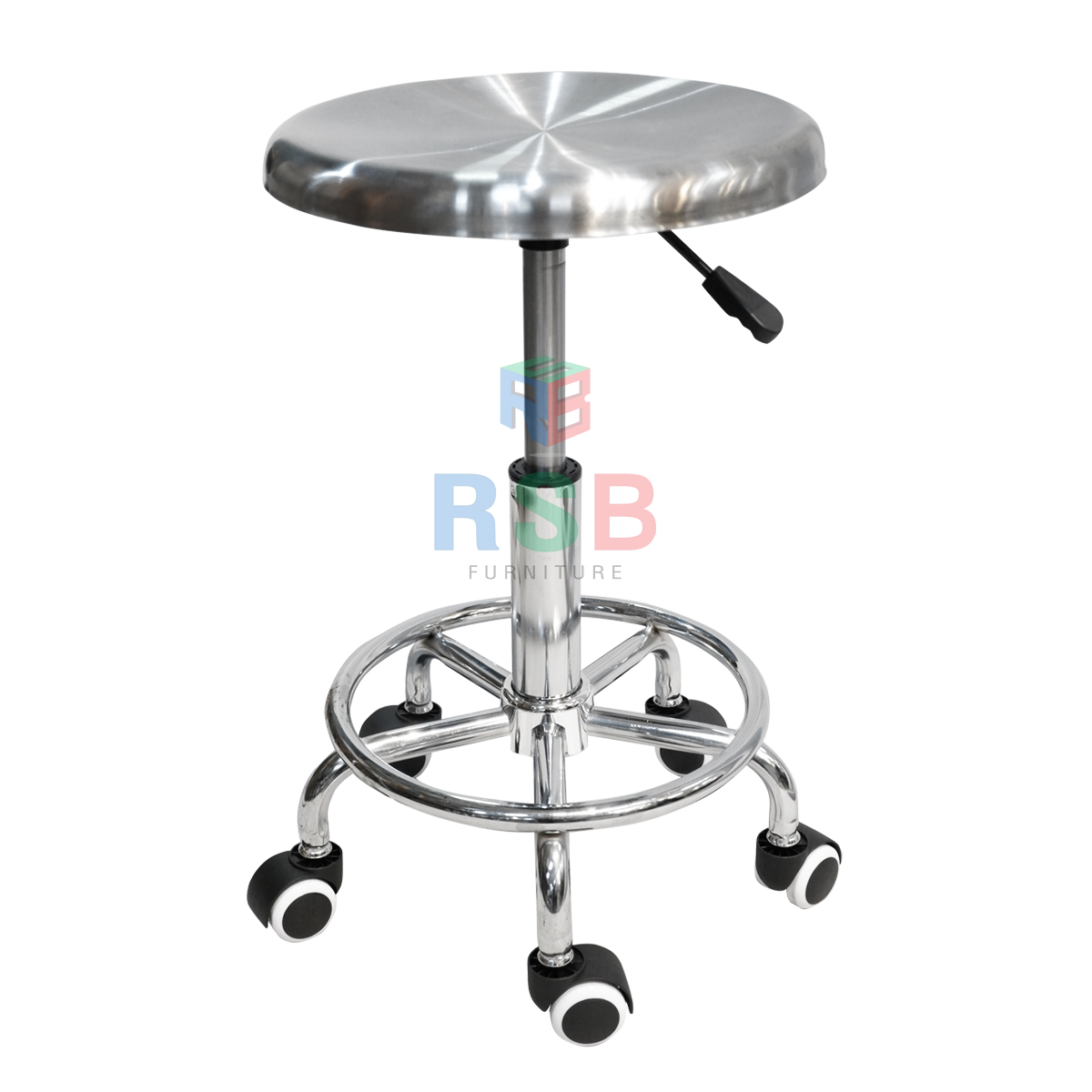 เก้าอี้บาร์ ที่นั่งอลูมิเนียมหนา ที่นั่งกว้างพิเศษ ขาเหล็กล้อ 5 แฉก มีที่เหยียบเท้า รหัส 4652