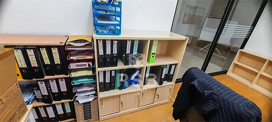นำภาพถ่ายจากหน้างานจริงที่เรานำไปจัดส่งมาฝากค่ะ หน้างานนี้จัดส่งและประกอบเสร็จลูกค้าใช้งานทันทีเลยค่ะ เพราะหน้างานนี้ลูกค้าต้องการใช้ตู้ไว้เก็บเอกสาร เพราะตู้เอกสารเก่าลูกค้าเก็บเอกสารเต็มทุกตู้ ได้เลือกใช้เป็นตู้เอกสาร 4 ช่องโล่งบน และช่องล่างทำเป็นบานเลื่อน สไลด์ 4 บานค่ะ หน้างานนี้ลูกค้าได้เลือกใช้ตู้เมลามีนสีเมเปิ้ลล้วนเหมือนกับตู้เดิมเลยค่ะ