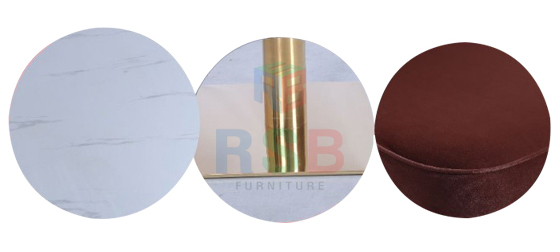 โต๊ะร้านกาแฟ ขาเหล็กสีทอง ท็อปไม้ลายหิน + เก้าอี้ร้านกาแฟ เบาะผ้ากำมะหยี่ 2 ตัว รหัส 3492