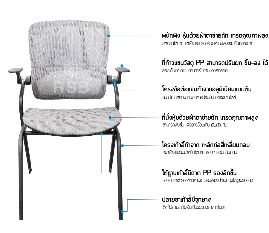– โครงพนักพิงวัสดุ PP แบบเหนียวยืดหยุ่นได้ ใช้งานคงทนระยะยาว