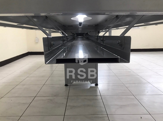 – ใต้โต๊ะมีรางท่อเหล็กสำหรับชุดสายไฟ
