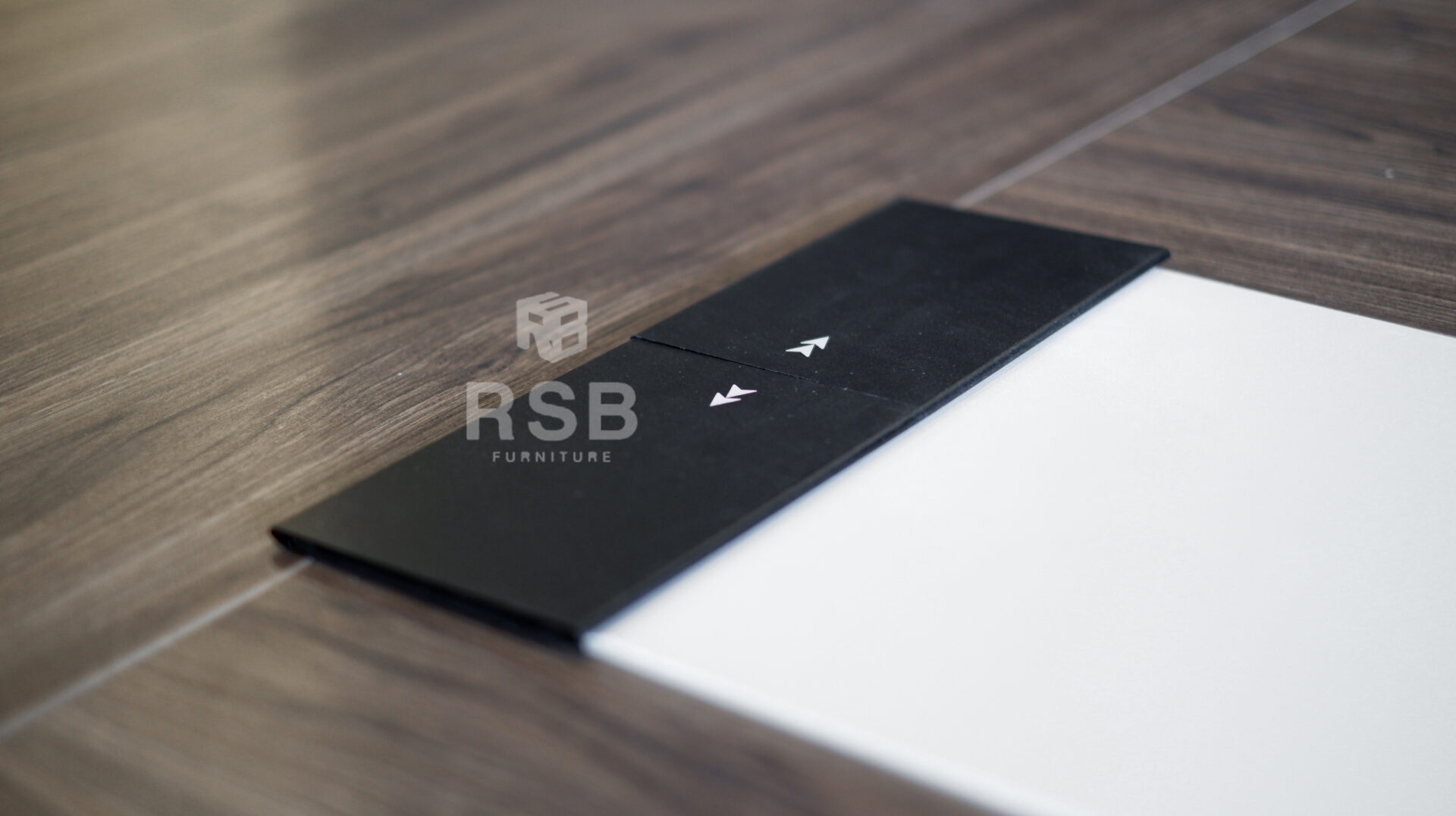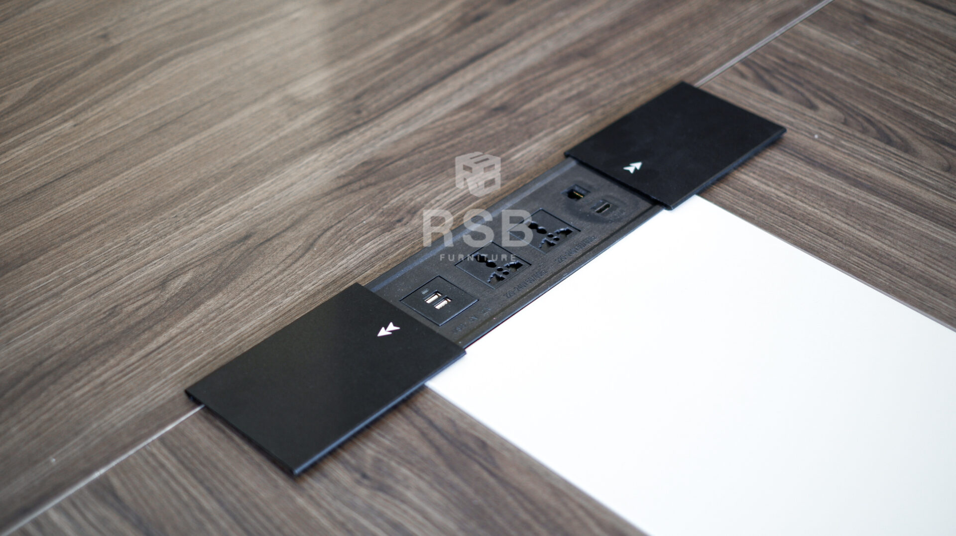 – มีกล่องปลั๊กไฟแบบสไลด์ 2 จุด ฝั่งแนบบนโต๊ะ