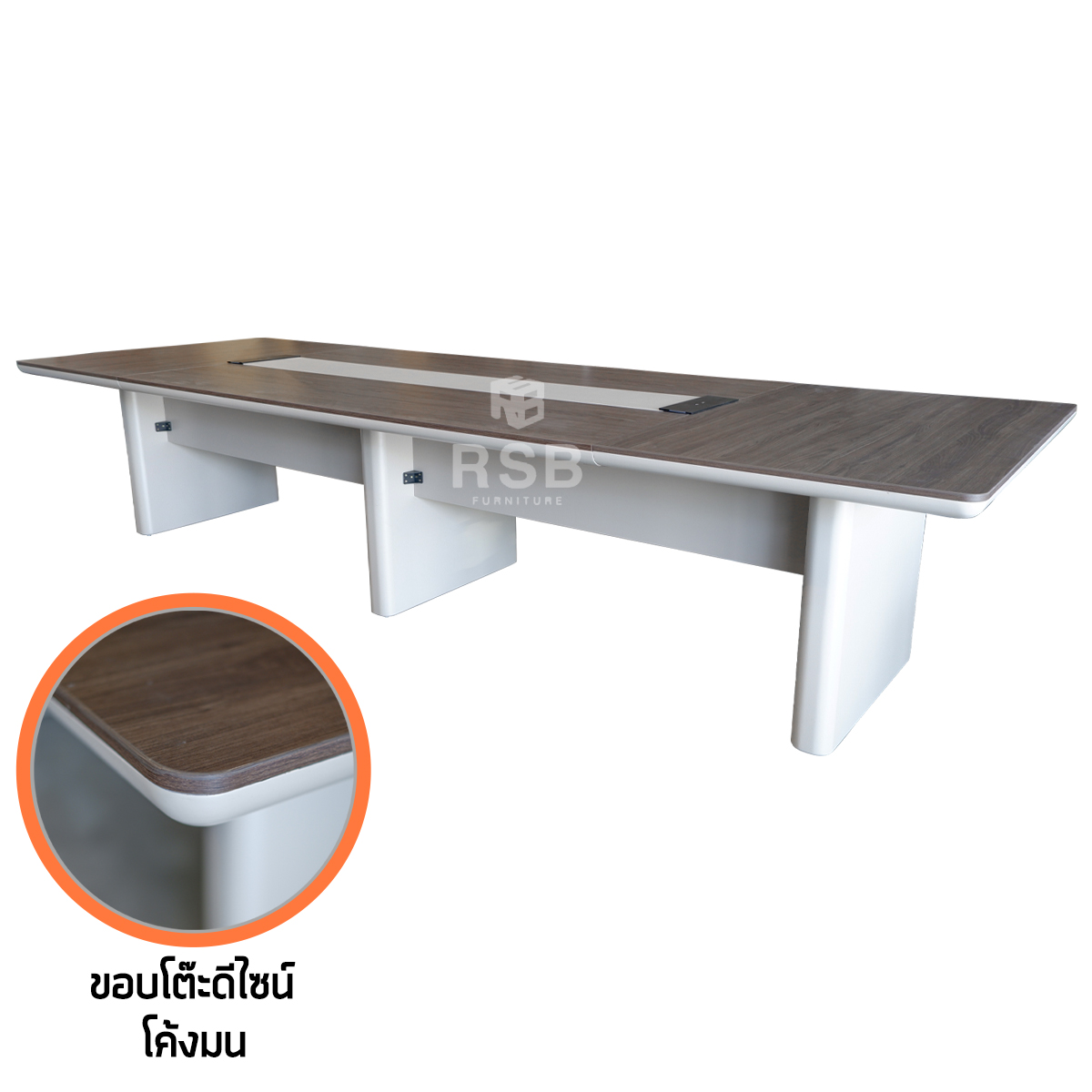 โต๊ะประชุม ดีไซน์ TOP MDF โค้งเว้า พร้อมกล่องปลั๊กไฟ ขนาด 360 x 120 cm รหัส 4803