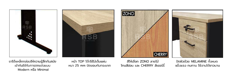 – มีสีให้เลือก ZONO ลายไม้โทนสีอ่อน และ CHERRY สีเชอร์รี่