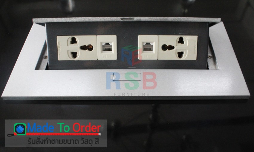 – เจาะรูบน TOP สำหรับใส่กล่องไฟ ราคานี้รวมกล่องปลั๊กไฟ บนโต๊ะ