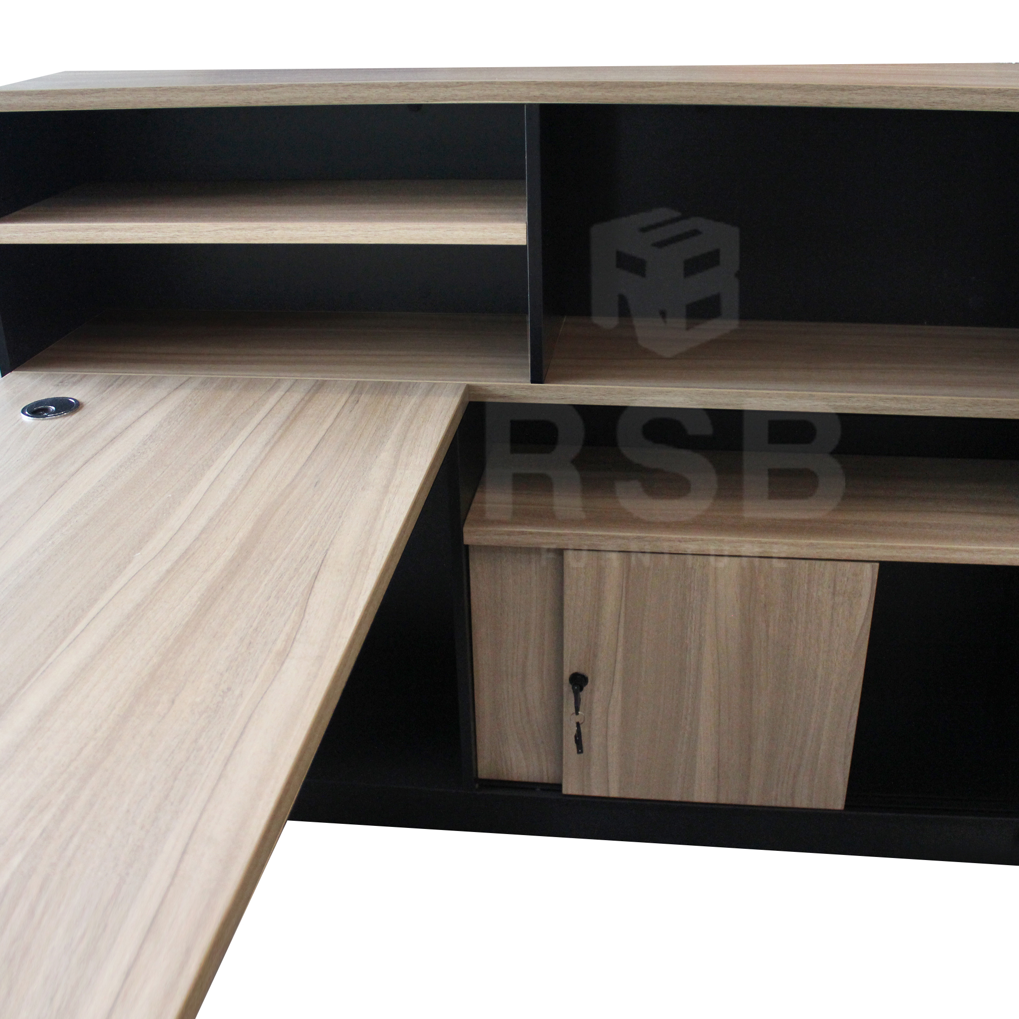 โต๊ะทำงานเข้ามุม+ตู้ไซด์บอร์ดสูงข้าง ขนาด W 150 x D140 x H109 cm รุ่นขายดี รหัส 2937