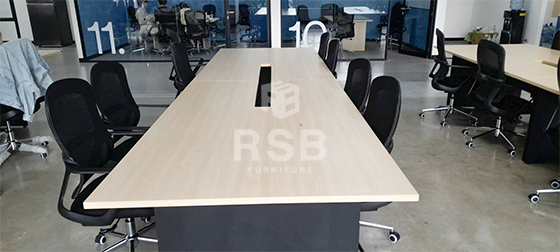 จัดส่งโต๊ะประชุมพร้อมเก้าอี้นั่งประชุมเสร็จเรียบร้อยแล้วค่ะ ลูกค้าหน้างานนี้เลือกใช้โต๊ะประชุมตัวต่อ ขาไม้ 4 ขา รหัสสินค้า 1108 ได้เลือกใช้เป็นขนาด 300 x 120 cm และเลือกใช้สีท๊อปสีเมเปิ้ลส่วนขาเลือกใช้สีดำค่ะ เก้าอี้ที่ใช้นั่งประชุมเลือกใช้เป็นเก้าอี้ทำงาน พนักพิงโค้งเว้า รหัสสินค้า 4674 รุ่นนี้ราคาไม่แพง ลูกค้าจึงนิยมนำมาใช้นั่งประชุมค่ะ