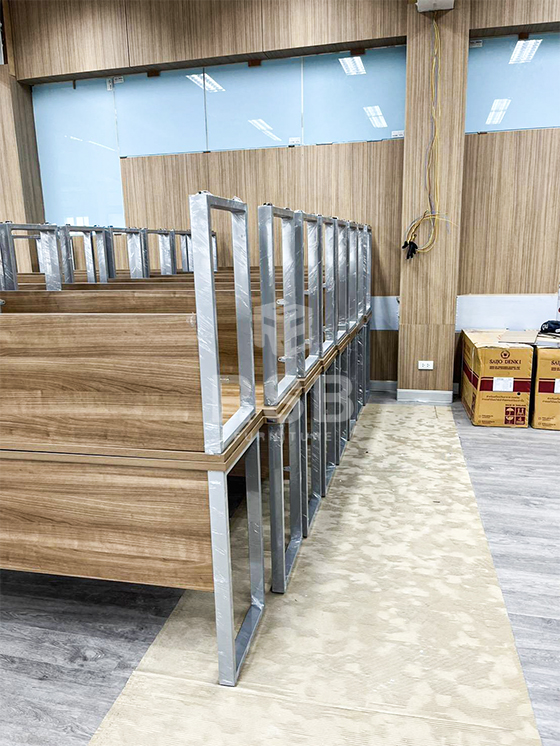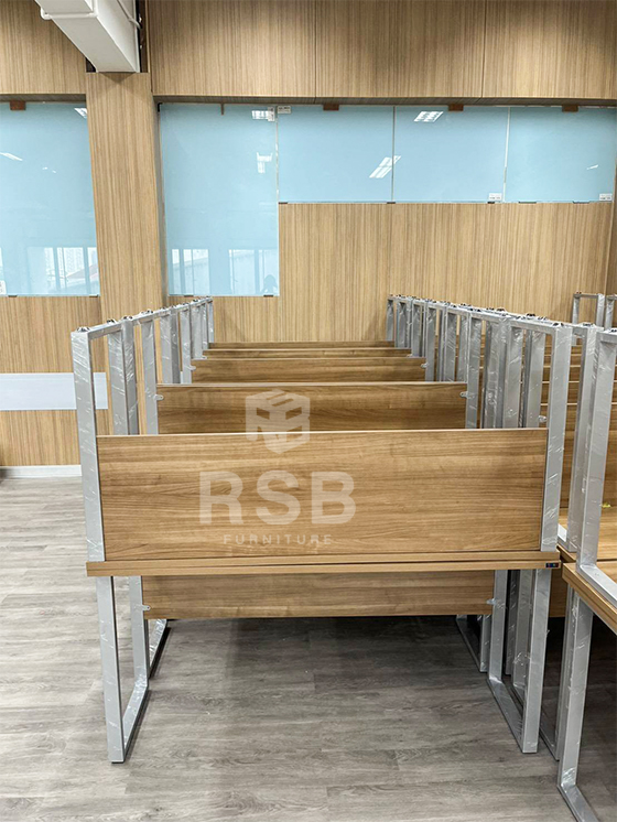 จัดส่งและประกอบถึงสถานที่เรียบร้อย โต๊ะทำงานขาเหล็กตัว C รหัสสินค้า 837 รุ่นนี้โต๊ะปิดผิวด้วยไม้เมลามีน เกรด A ช่วยกันความชื้นได้ดีในระดับนึง สามารถเลือกสั่งผลิตสีได้รวมถึงขาก็ได้เลือกสีได้ ในภาพหน้างานนี้เลือกท๊อปและบังหน้าสีคาปู ส่วนขาเหล็กเลือกใช้สีเทาค่ะ
