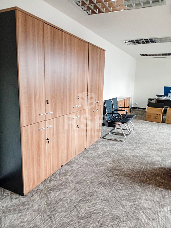 จัดส่งและประกอบติดตั้งเรียบร้อยตู้เอกสารสูง 200 cm รุ่นบานเปิดบนและบานเปิดล่าง เมลามีนเกรด A รหัสสินค้า 995 ในภาพเป็นโซนเก็บเอกสารภายในออฟฟิศลูกค้า ลูกค้าได้เลือกตู้เมลามีนสีคาปูสลับตัดกับสีดำค่ะ เมลามีนเกรด A ช่วยกันความชื้นและความร้อนได้ดีในระดับนึง